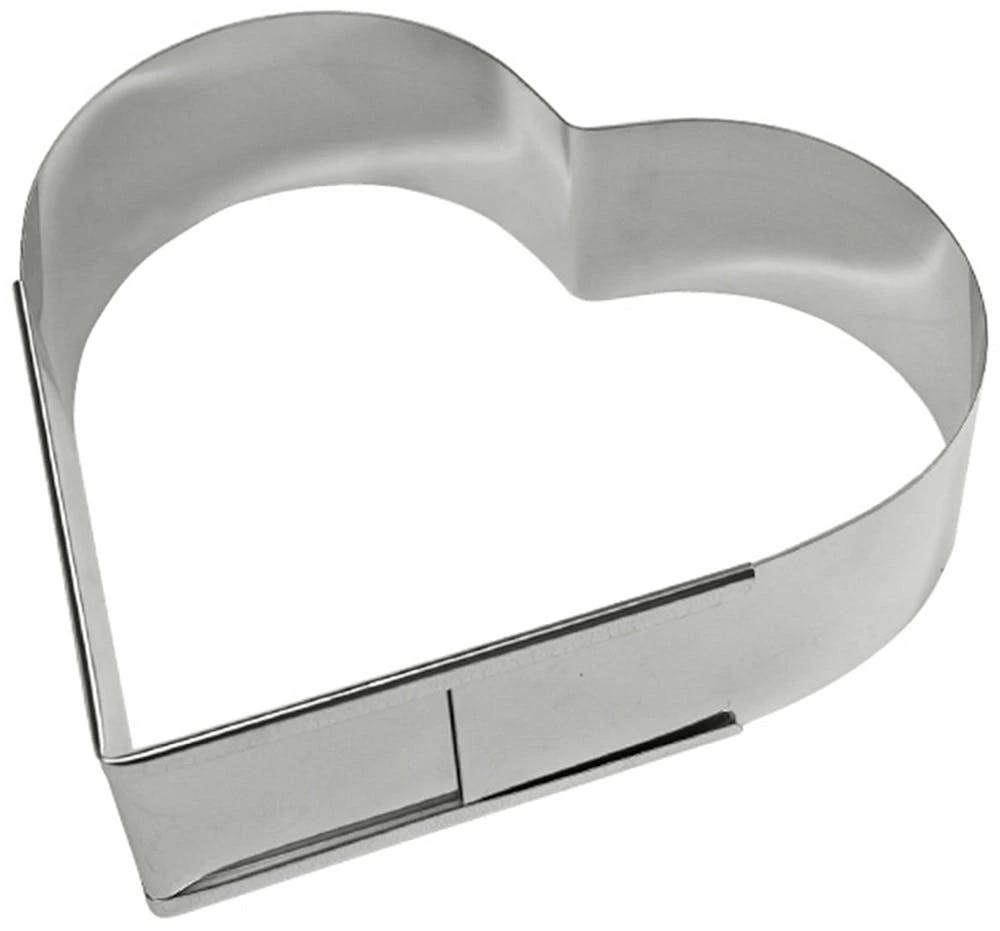 Verstellbarer Backrahmen in Herzform aus Edelstahl. ++ Material: Edelstahl ++ Materialstärke: 0,5mm – 1,00mm ++ ausziehbar/verstellbar ++ Höhe: 70mm ++