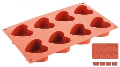 Silikon-Backmatte, HALBES EI mit 5 Formen aus reinem flexiblen Silikon, terrakottafarben, 30 x 17,5 cm, temperaturbeständig von -60°C bis +230°C, formstabil, spülmaschinenfest, geruchs- und geschmacksneutral