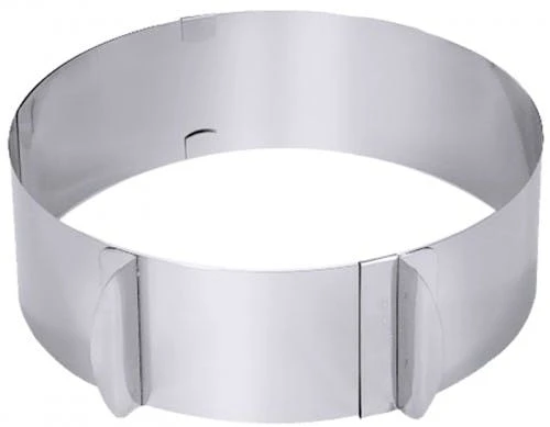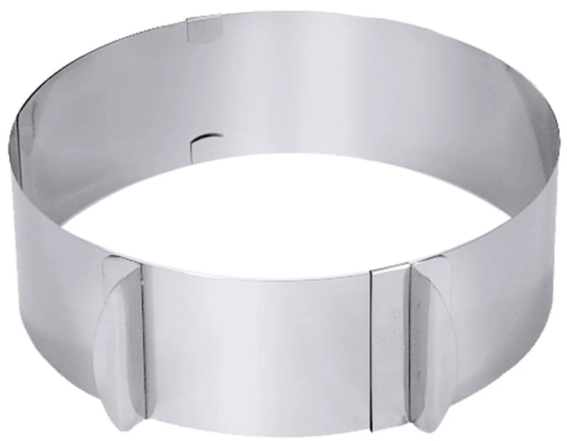 3x Tortenring aus Edelstahl 18/0. hochglänzend. verstellbar. Höhe: 6 cm. Durchmesser min: 16.5 cm / max: 32 cm spülmaschinengeeignet. zum Reinigen ganz zu öffnen. mit Griffen stufenlos verstellbar. schwere Qualität