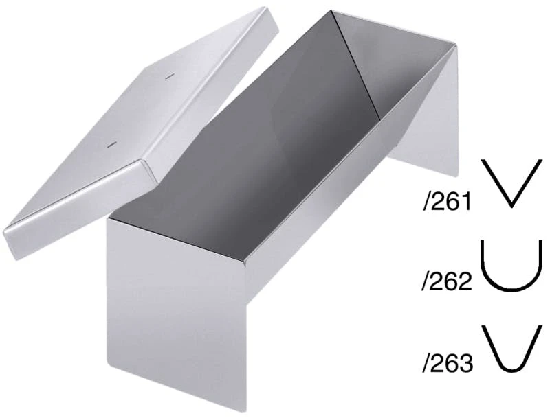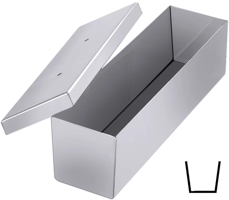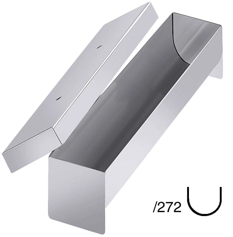 Pastetenform (halbrunde „Dachrinne“), aus Edelstahl, hochglänzend, Bodenabstand ca. 1 cm, mit Deckel